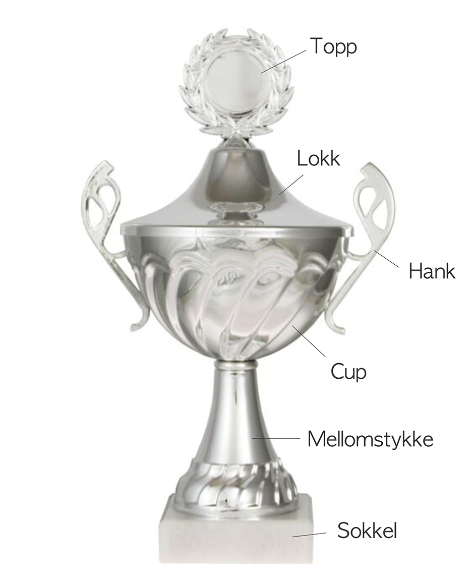 De fleste pokaler er satt sammen av 3-6 komponenter – se oversikten.