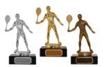 Badminton herre figur på sort marmorsokkel. Høyde 11 cm. Gull, sølv og bronse valør.