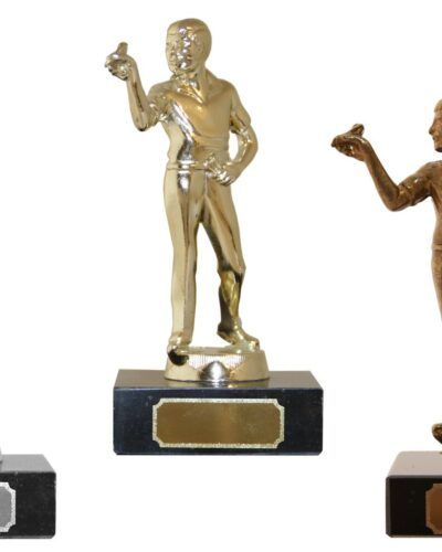 Dartfigur i hardplast på sort marmorsokkel.