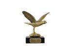 Flyvende due metallfigur i gullvalør.