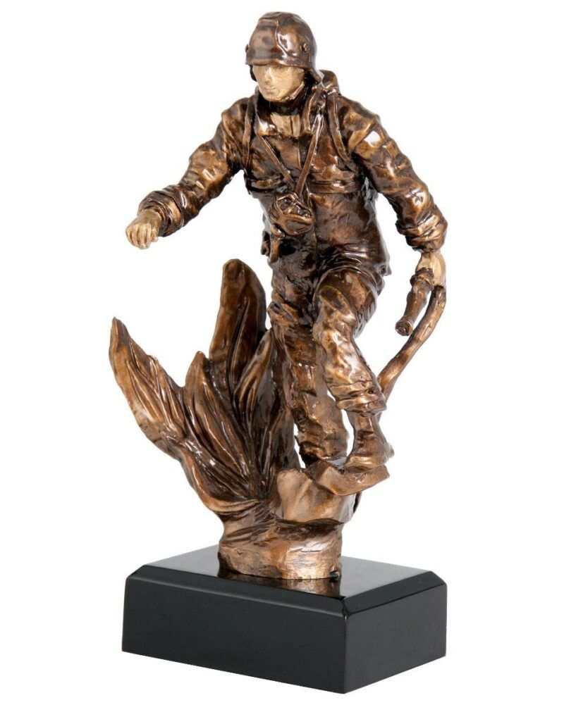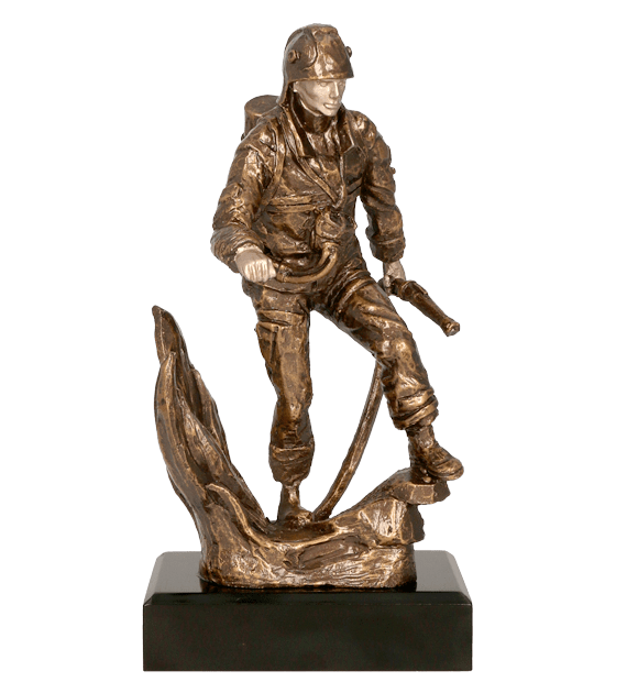 Helstøpt brannmannfigur i resina. Graveringsplate festes på sokkelen.