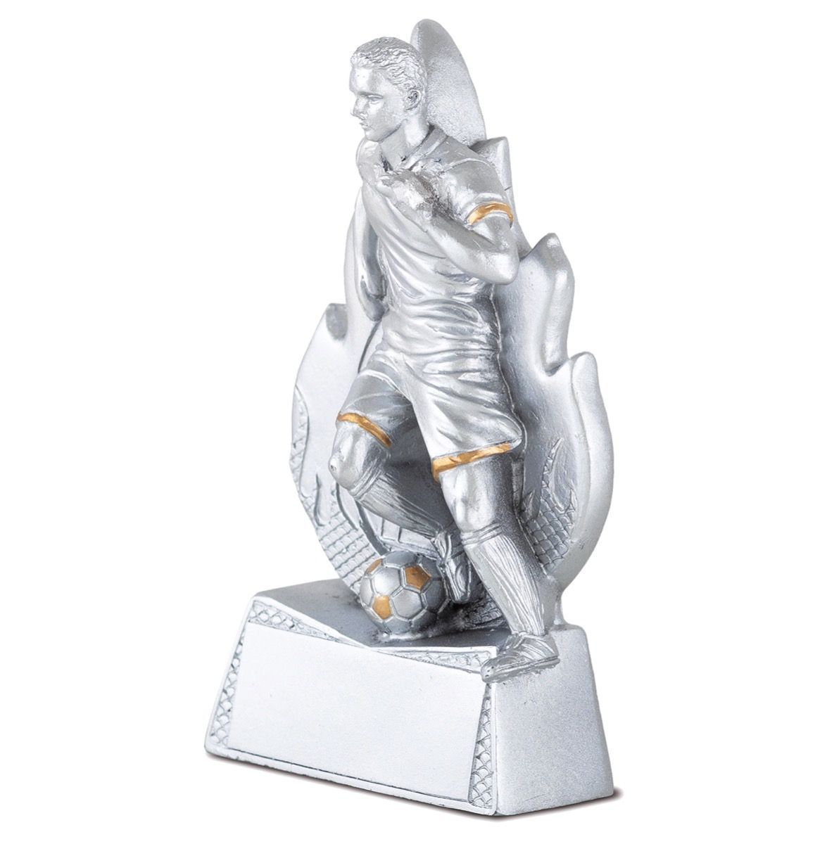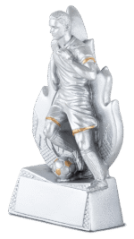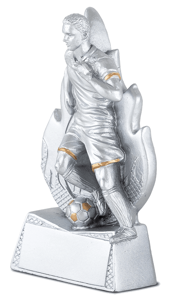 Fotballstatuetten er helstøpt i resina. Herre fotballspiller.