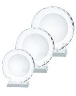 Glassfat-serien Gamma, er en lekker og tidløs serie fat med holder. Glassfatene blir levert i lekre etui kledd med silkestoff.