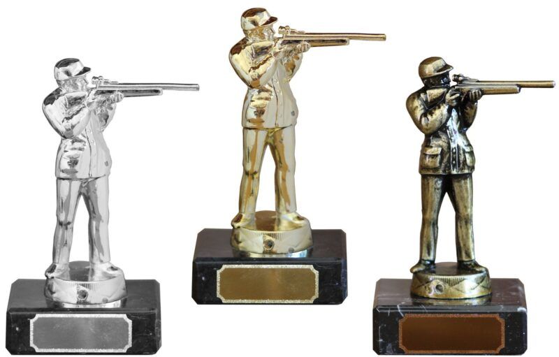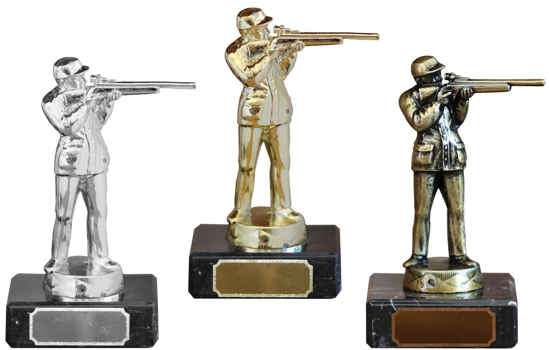 Metall statuett på sort marmorsokkel. God plass til gravering på sokkelen.