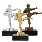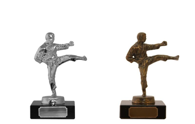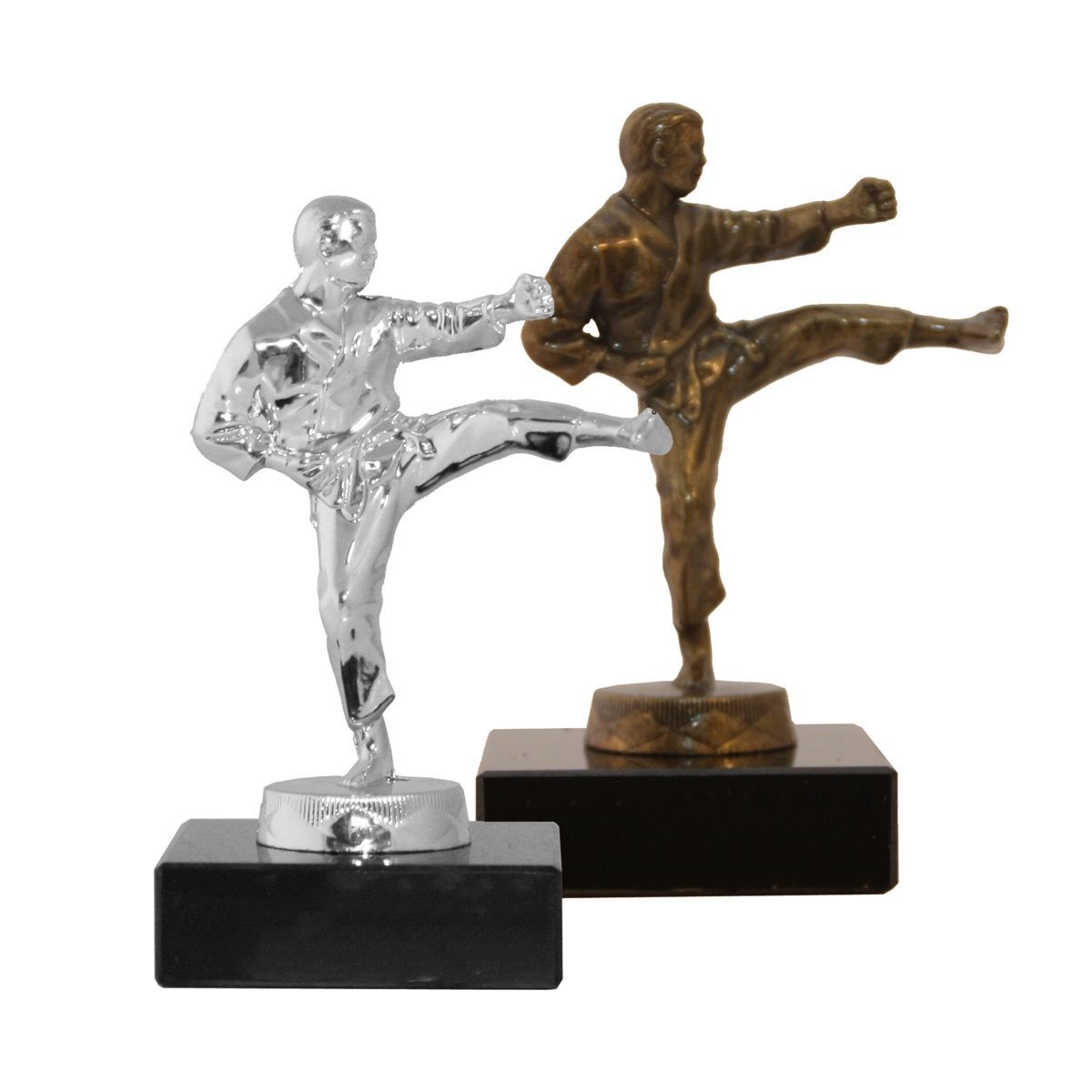 Karate metallfigur på sort marmorsokkel.Gravering på plate som festes på sokkelen.