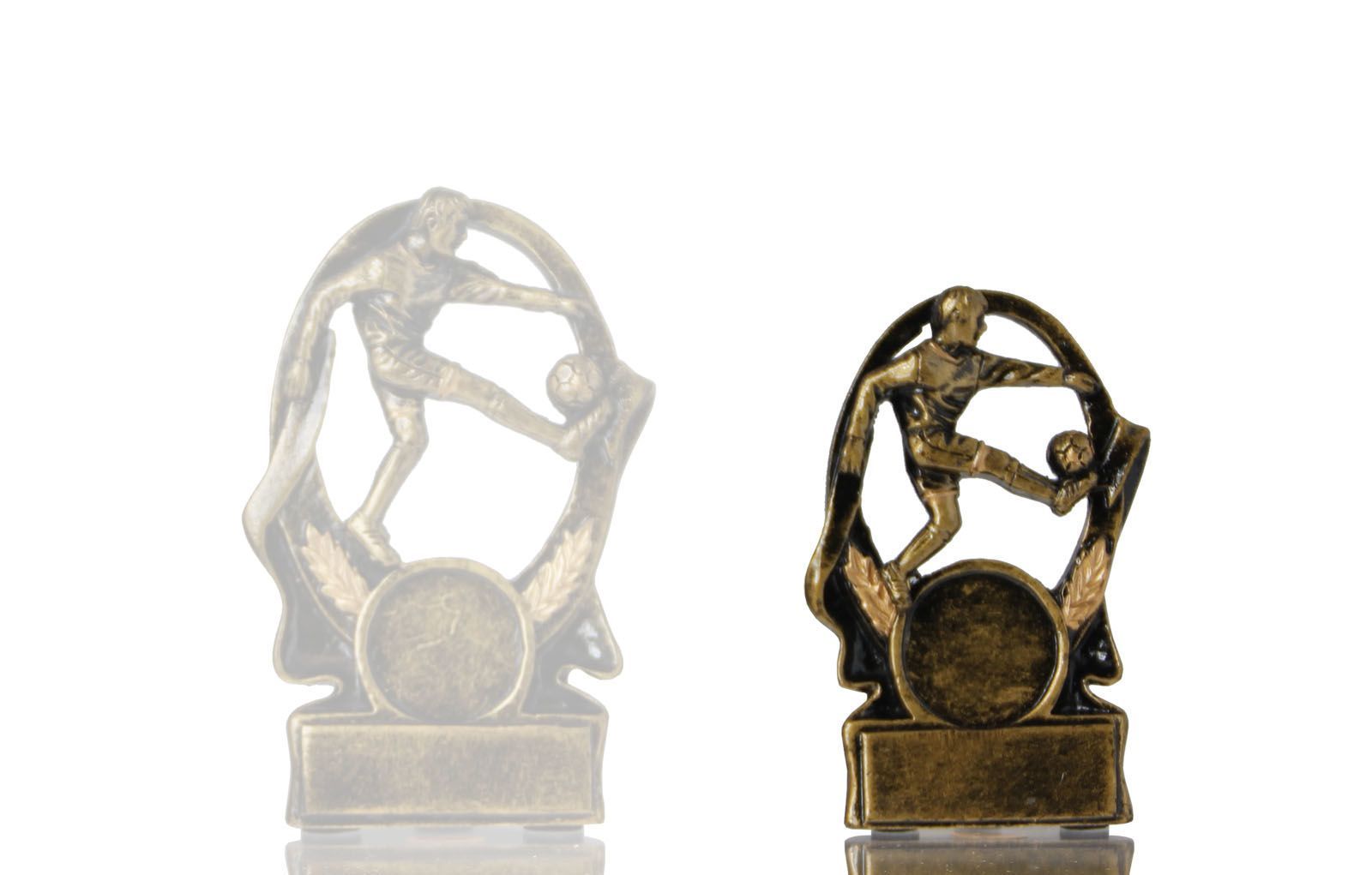 Herrefotball statuett støpt i resina. Høyde 9 cm og 11 cm. Gravering gjøres på sokkelen.