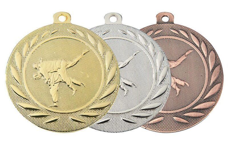 Judomedalje i gull-, sølv- og bronsevalør. Kul kampsport-medalje støpt i metallet zamak. Kan graveres på baksiden. Fin premie til heldige vinnere.