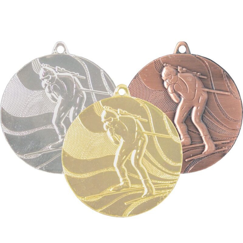 Skiskytter-medalje helstøpt i jern. Stor skimedalje som kan graveres på baksiden.