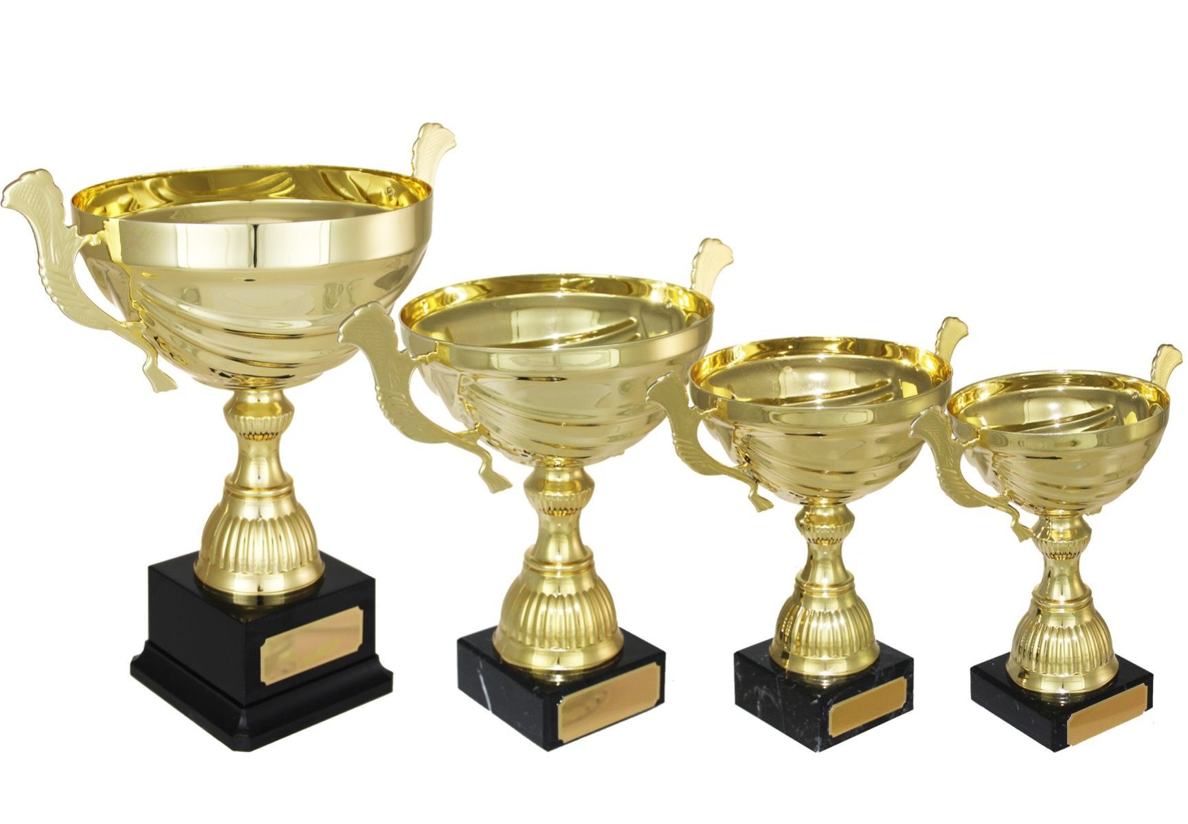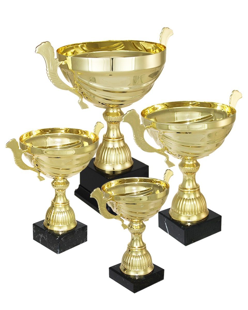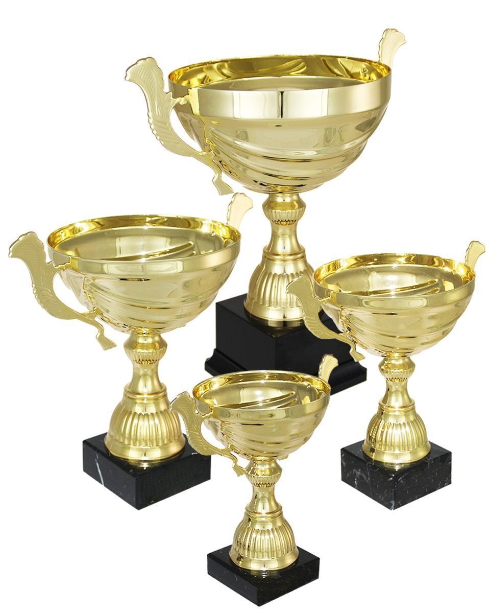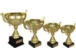 Flott pokalserie i gullvalør med hank.