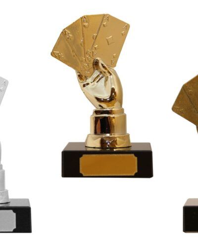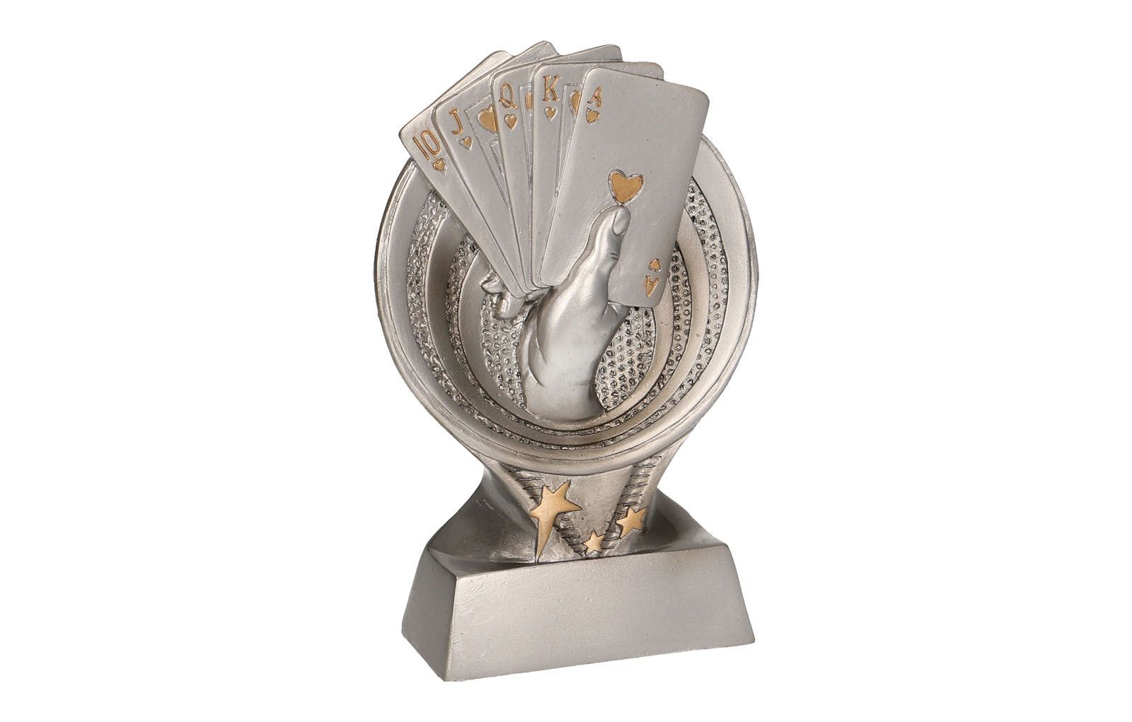 Kortspill-statuett i resina antikk sølv.Kan graveres på plate på sokkelen.