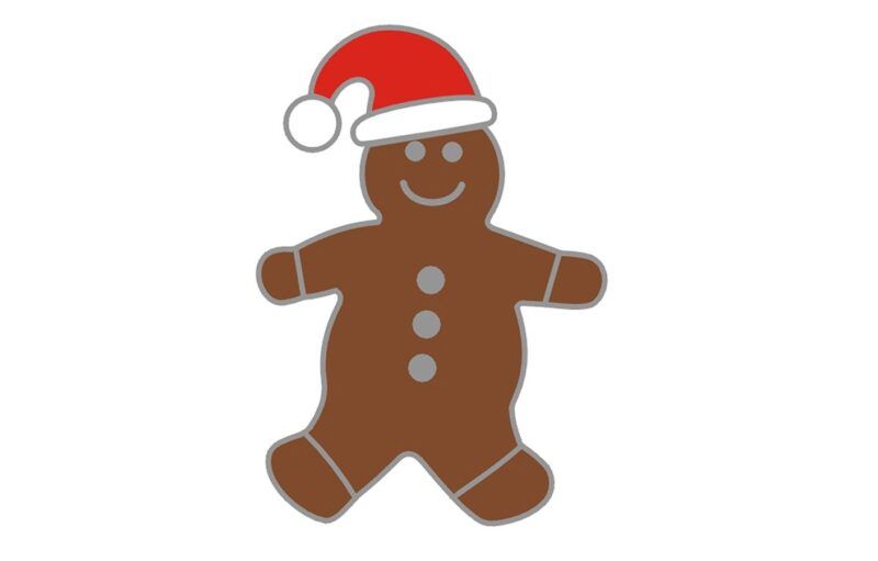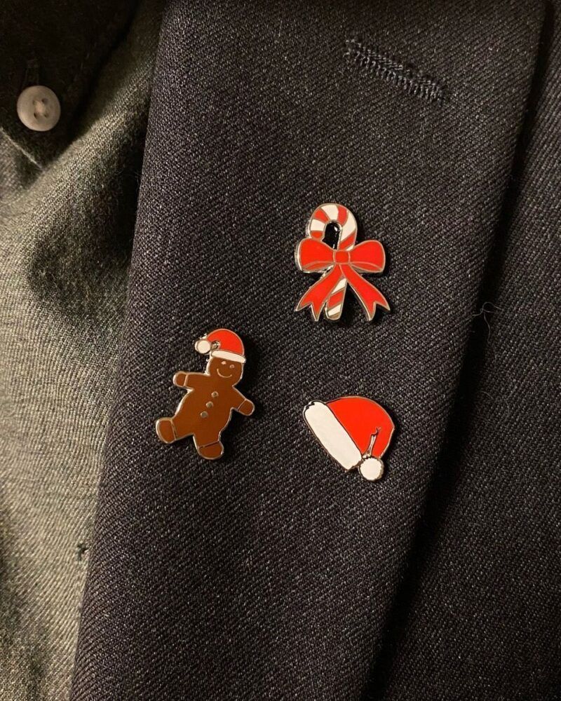 Morsom julepins med pepperkakemann i farger. Fin å gi bort eller ha på seg til julens selskapligheter!