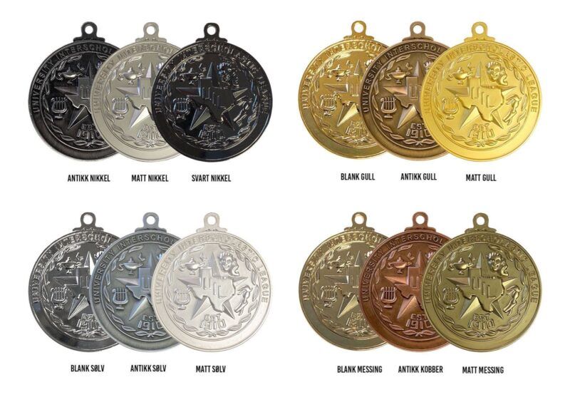 Medaljene kan leveres med farge eller valørene gull, sølv eller bronse.