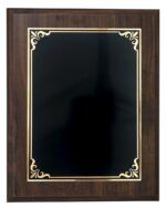 Plakett i solid tre med grå metallfront til å henge på veggen.