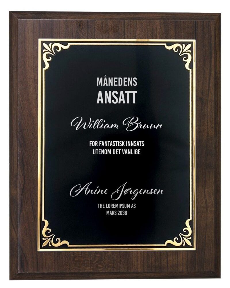 Ved gravering av egen logo er det en innleggelseskostnad på kr 400 inkl mva. (Vises ikke i handlekurv). Logo sendes som vedlegg til post@trofe.no