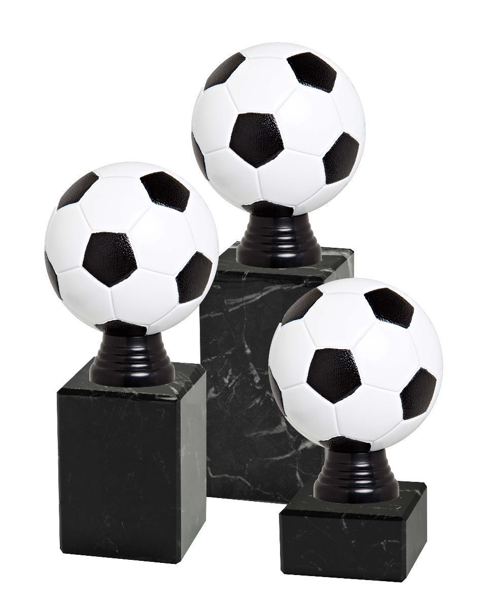 Fotball-statuett på høye, flotte marmorsokkeler.