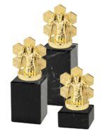 Langrennsmotiv i gullvalør støpt i hardplast.