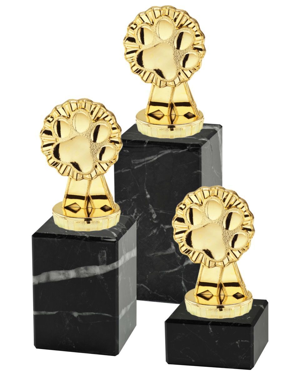 Dyrestatuett støpt i hardplast på marmorsokkel.