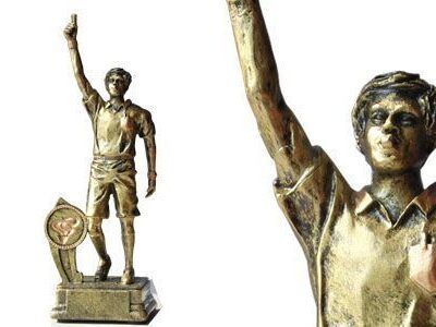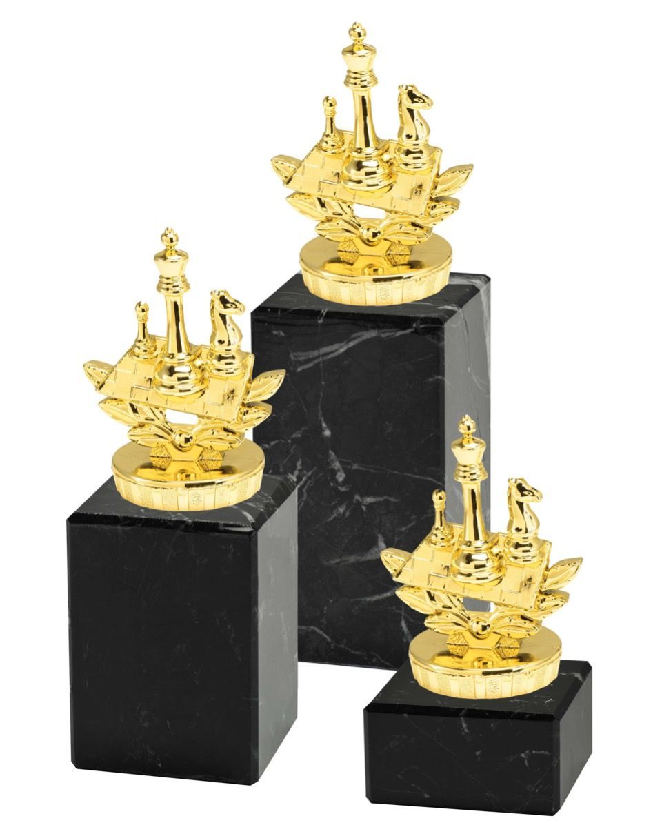 Sjakkstatuett på høye, flotte marmorsokkeler.