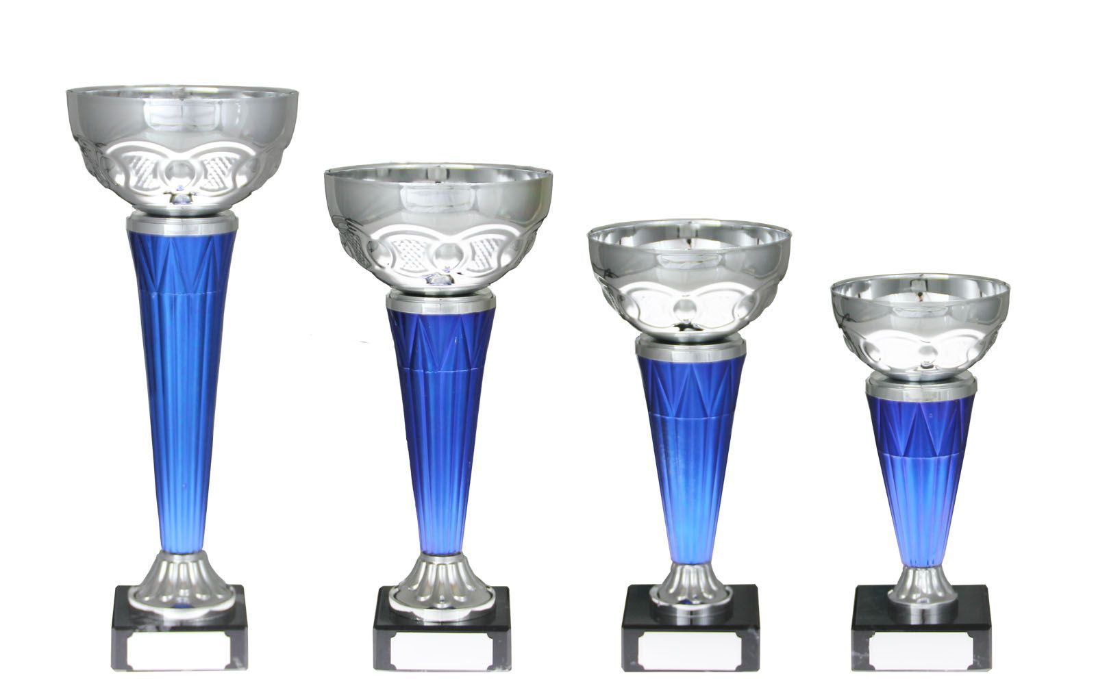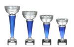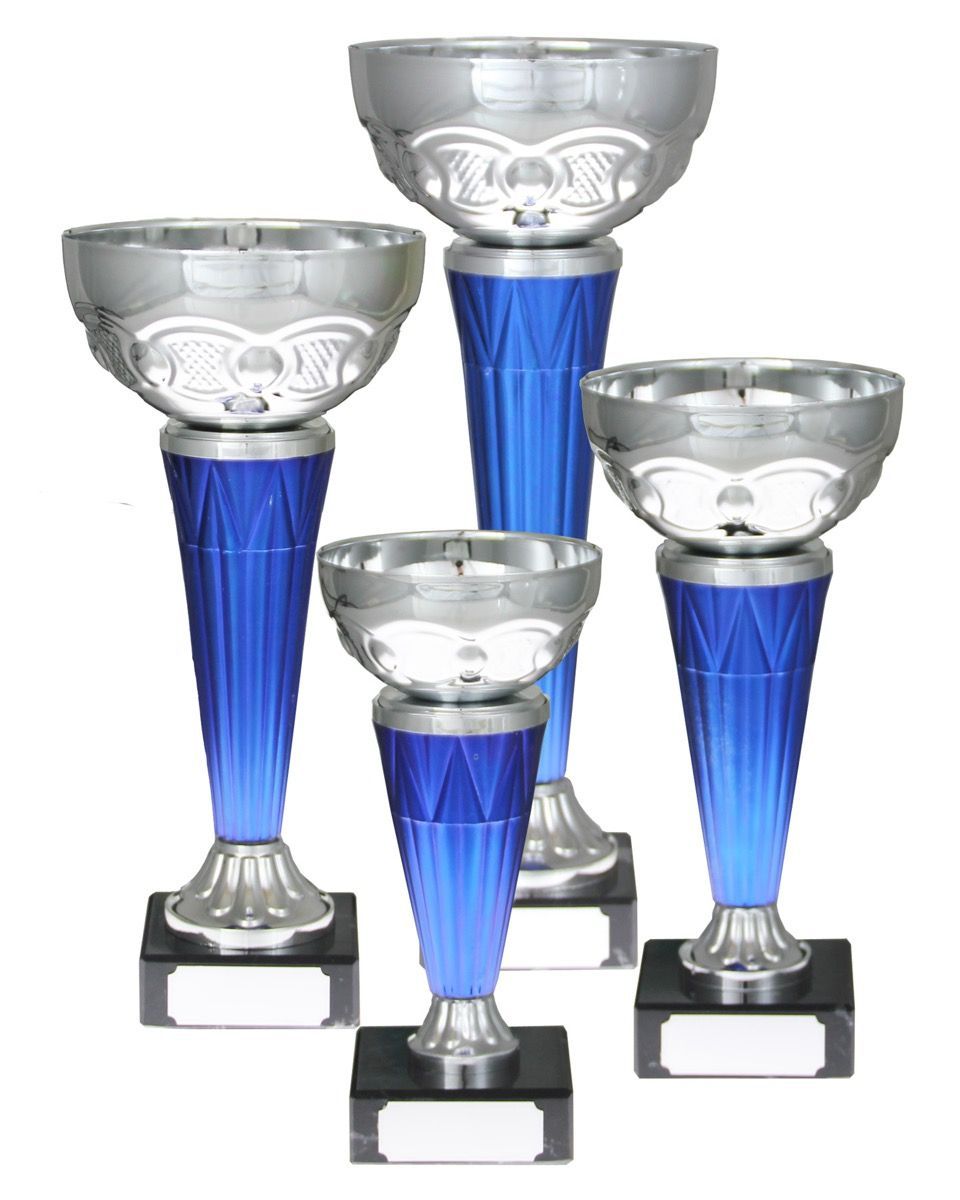 Elegant, slank pokalserie i blått og sølv.