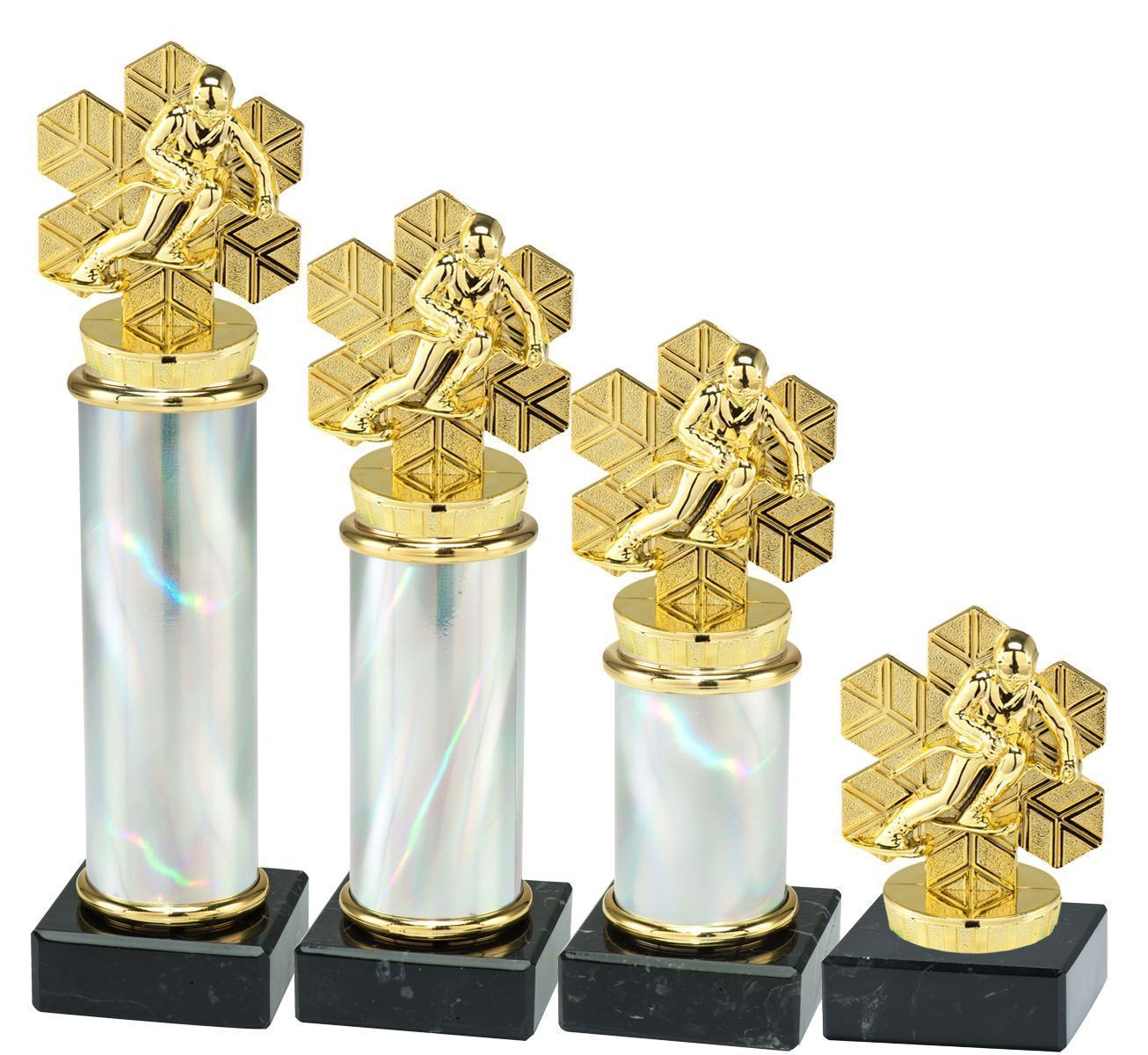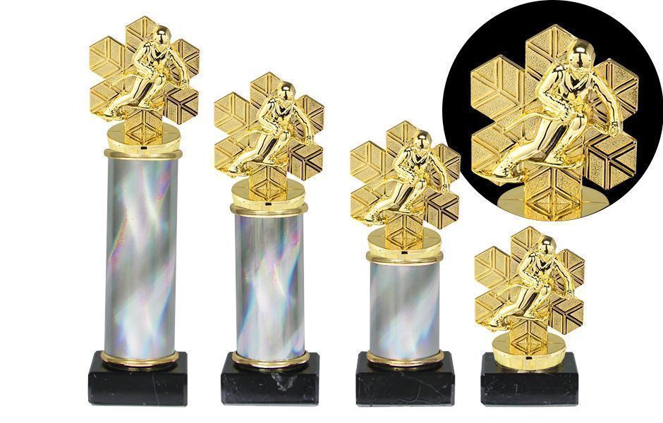 Den minste statuetten kan brukes som deltagerpremie, mens statuettene på perlemor-mellomstykke er ideelle som 1.-, 2.- og 3.-plass.