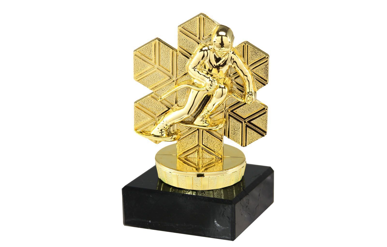 Skistatuetten Aero, er super når alpinister skal premieres. Statuettene er i hardplast på sort marmorsokkel. Motivet er i gullvalør og er en alpinist i et snøfnugg.