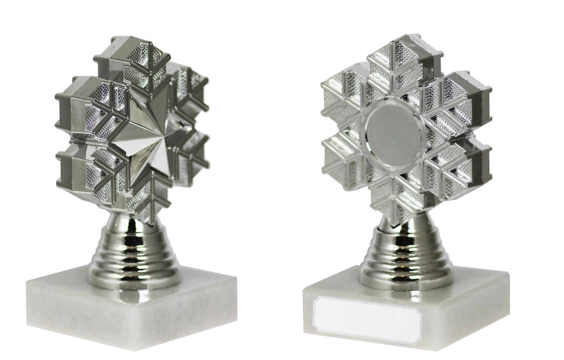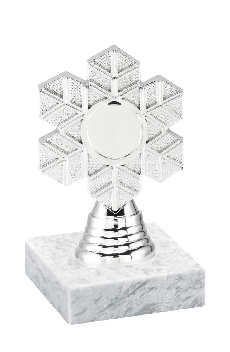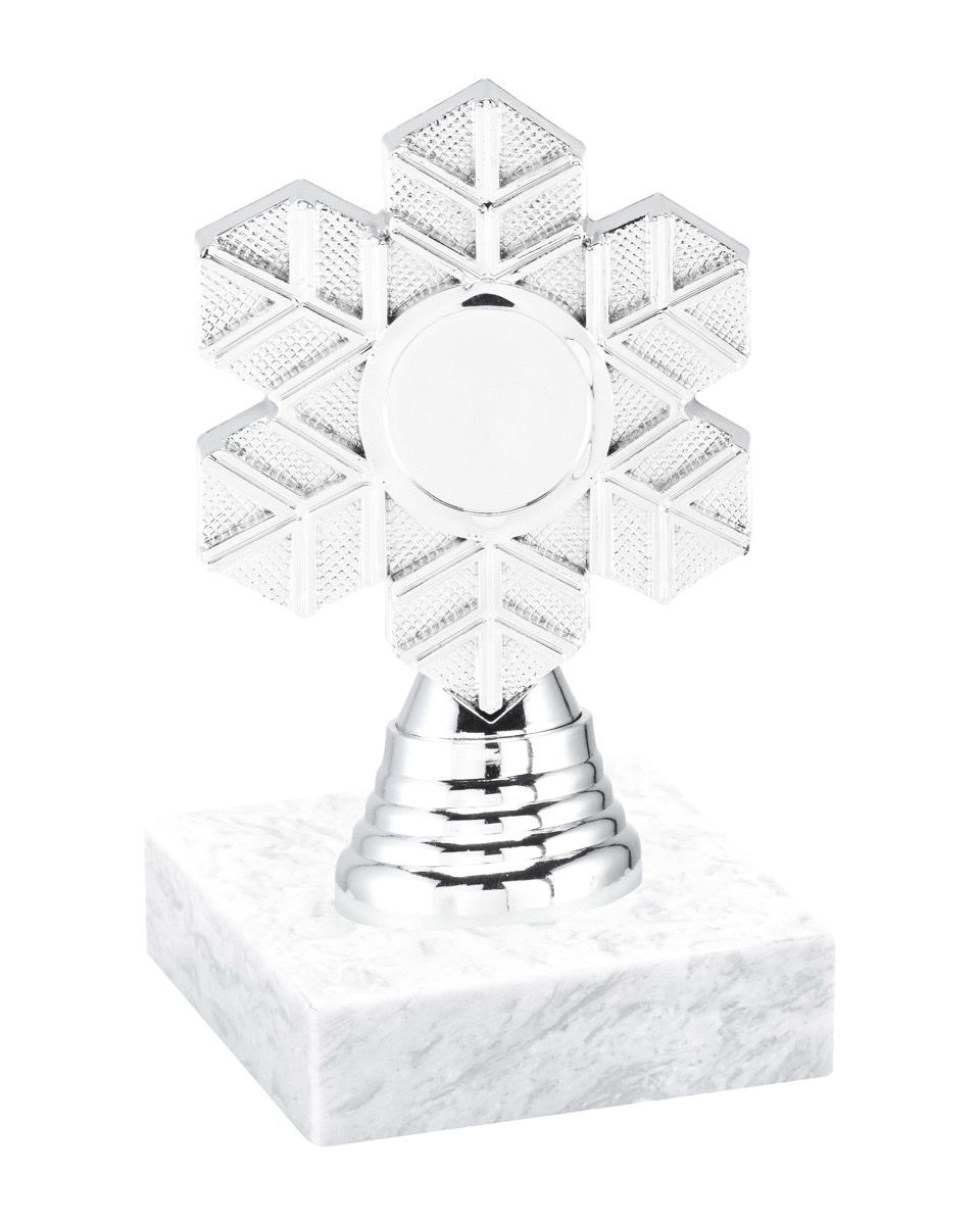 Statuetten Mini Vinternatt, er en lekker statuett i sølvvalør på hvit marmorsokkel.