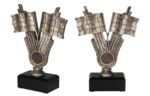 BEGRENSET ANTALLMotor-statuett støpt i resina.Graveringsplaten festes på tresokkelen.