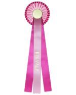 Rosetter i mørkl og lys rosa farge, ferdig trykt med BIS VALP. Rosetter som passer perfekt til hundeutstillinger.
