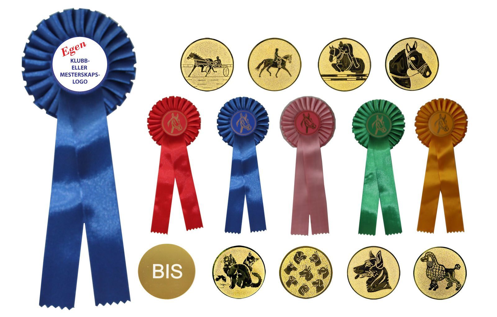 Flott og enkel rosett. Kan graveres med egen logo og eller tekst i senterfeltet. Ønsker du trykk på båndet? Kontakt oss!