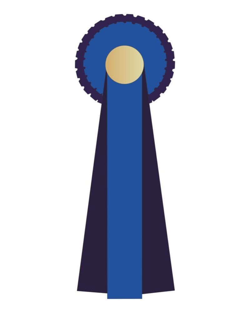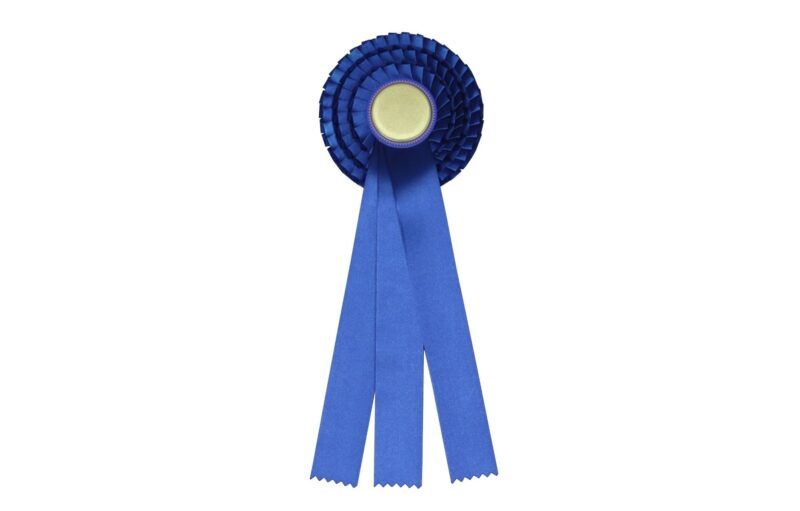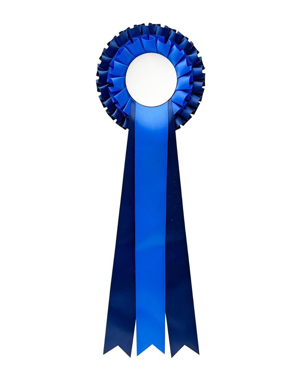 Flott rosett med 3-lags bånd og krans. Kan graveres med egen logo og eller tekst i senterfeltet. Ønsker du trykk på båndet? Kontakt oss!