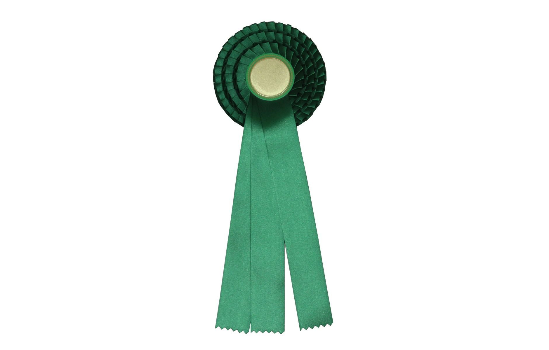 Flott rosett med 3-lags bånd og krans. Kan graveres med egen logo og eller tekst i senterfeltet. Ønsker du trykk på båndet? Kontakt oss!
