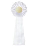 Superfine rosetter av høy kvalitet. Rosettene er lagt av silkemykt stoff. Rosettene kan lasergraveres med egen logo og eller tekst i senterfeltet eller på trykkes på båndet.