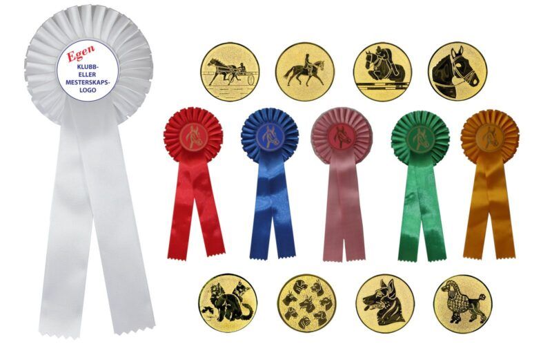 Flott og enkel rosett. Kan graveres med egen logo og eller tekst i senterfeltet. Ønsker du trykk på båndet? Kontakt oss!