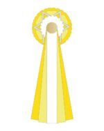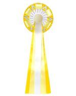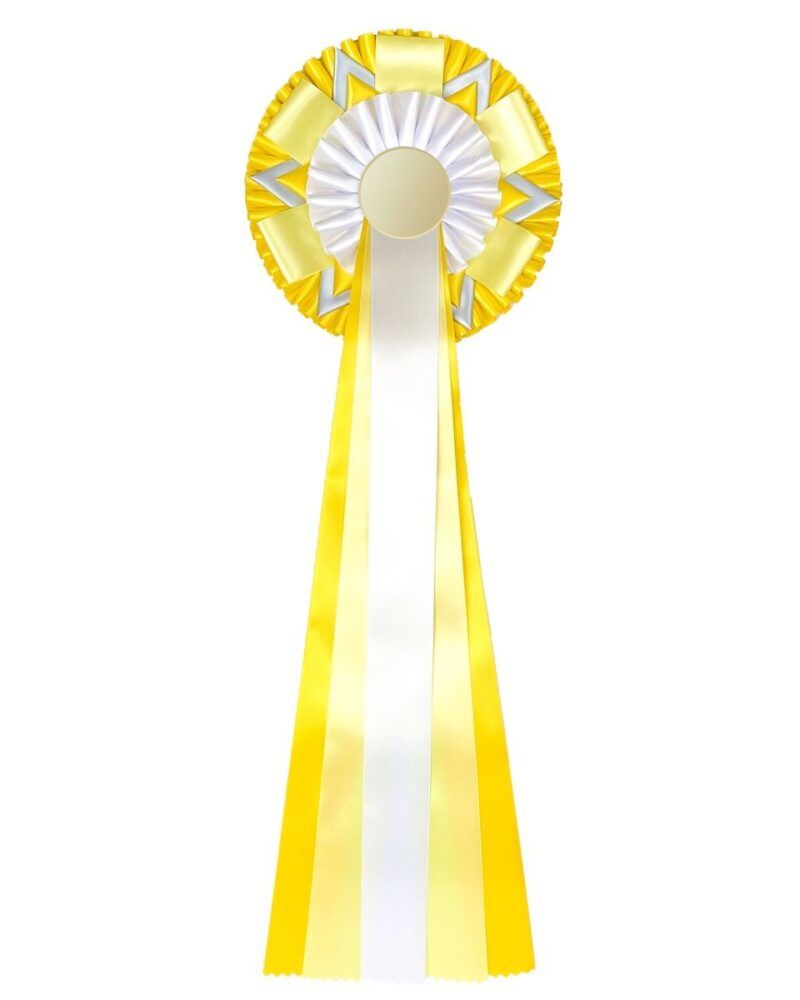 Rosetter i silkemykt stoff. Rosetter i gule nøyanser med sølv detaljer.