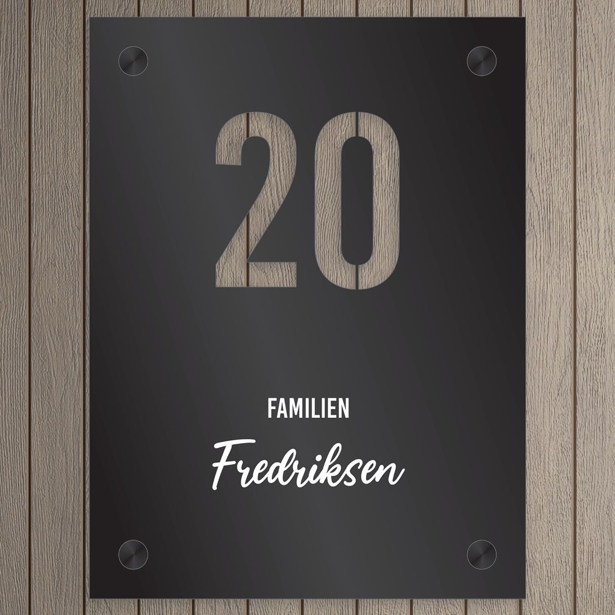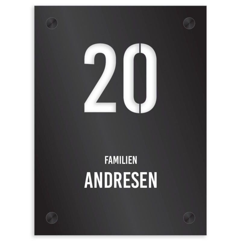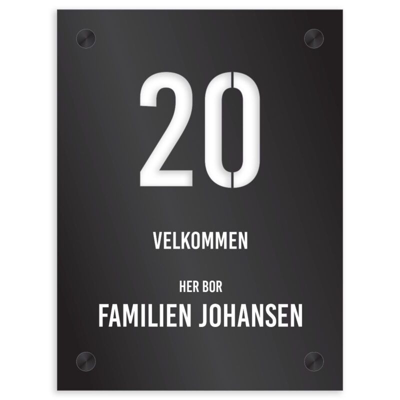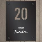 Trendy husskilt med husnummer stanset ut!