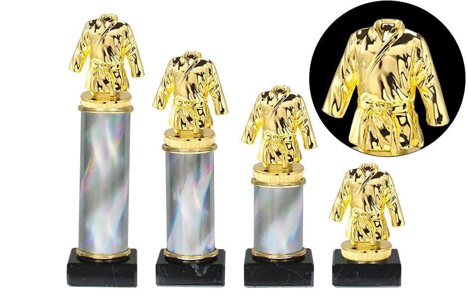 Kampsportstatuetten Aero, er super når mange skal premieres. Statuettene er i hardplast på sort marmorsokkel. Motivet er i gullvalør og er en kampsportdrakt. Statuetten kan brukes til idretter som karate, judo og jiu jitsu.