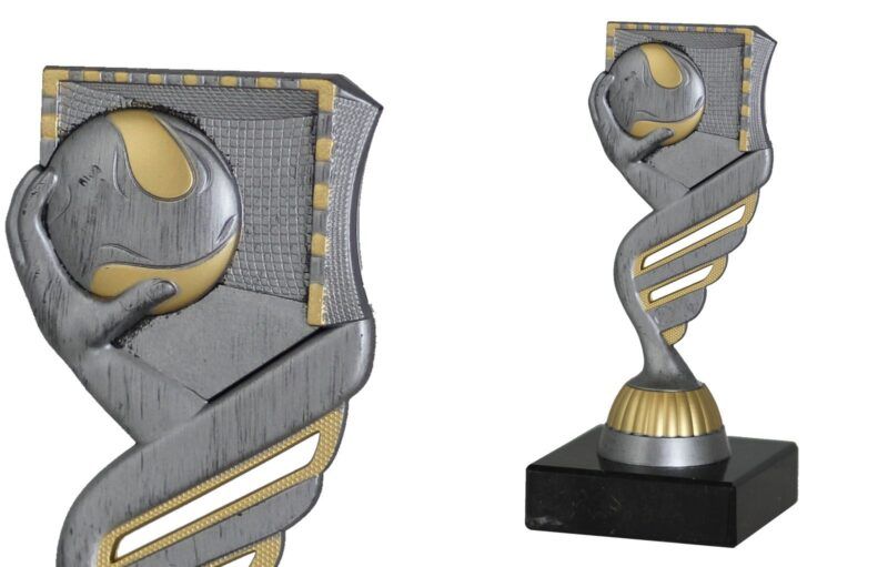 Håndball-statuett i antikk finish på marmorsokkel.Prisgunstig håndballpremie i hardplast