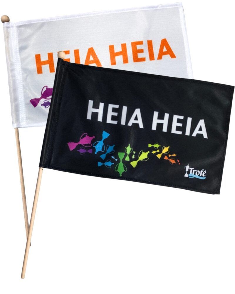 Flaggene trykkes i fullfarge på lett og slitesterk 100D polyester – perfekt til både inne- og utebruk. Hver størrelse leveres med tilpasset stang i tre eller PVC, klar til bruk.