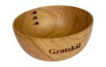 Kjempesøt liten turbolle i tre. Kan rundgraveres med valgfri tekst og motiv. Super som gave til ansatte, venner eller som brukspremie til heldige vinnere! Passer fint til grøt, suppe, turmatretter og dessert. Innvendig er den merket med 1, 2 og 3 dl.
