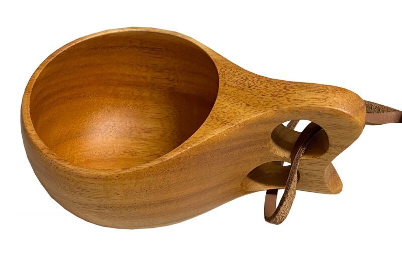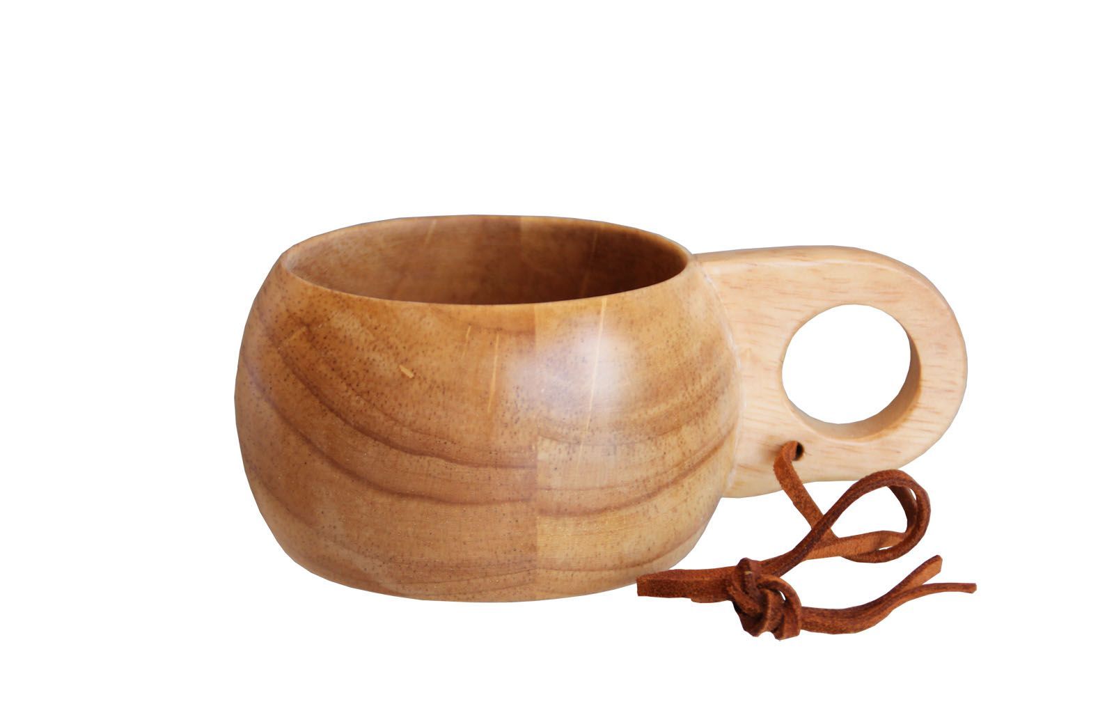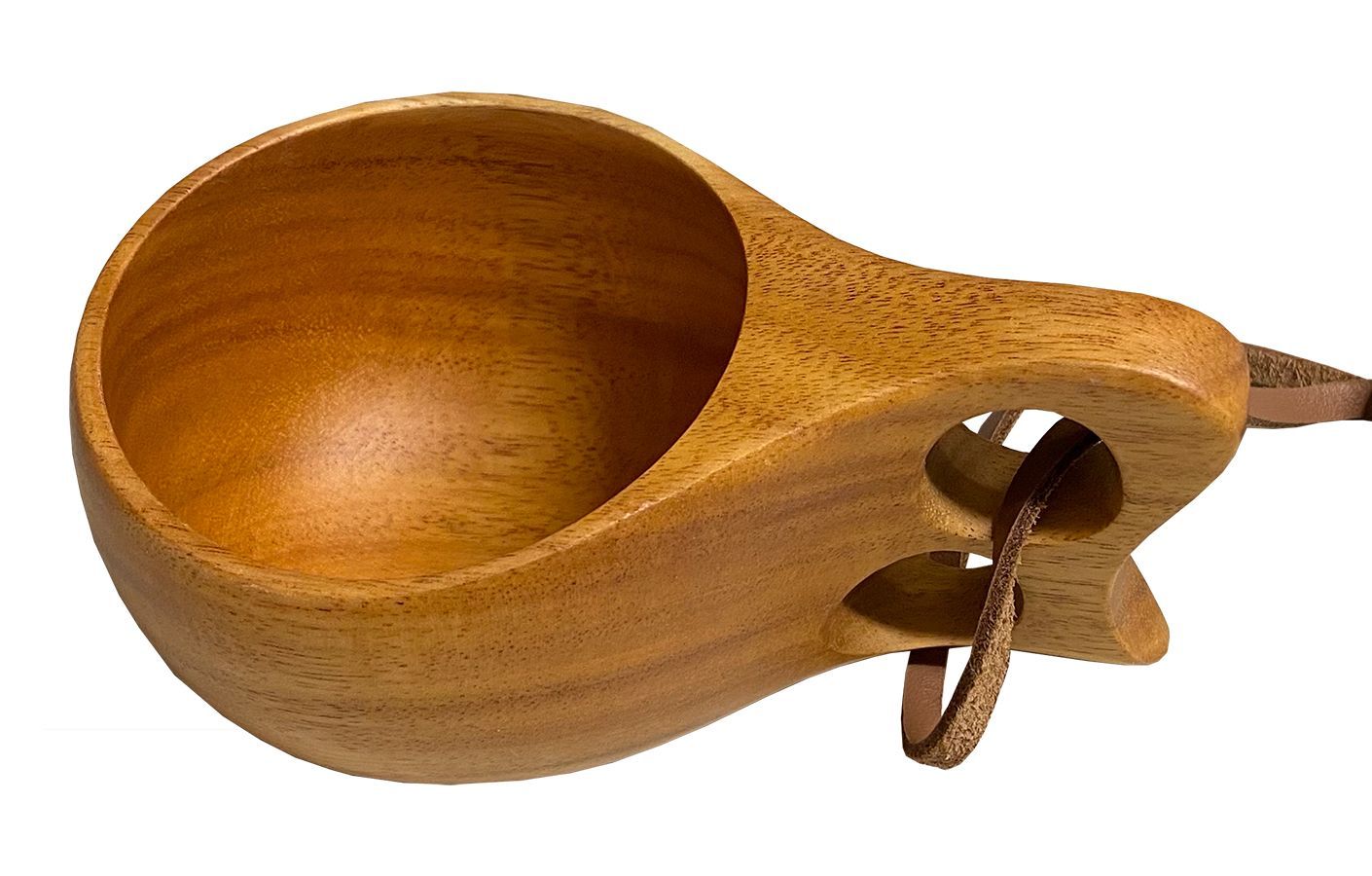 Turkopp i tre, med lærreim. Lett og praktisk på tur.