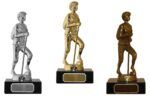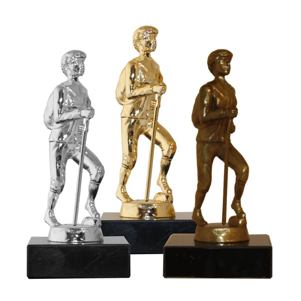 Turmarsj dame – støpt metallfigur.I gull-/sølv-/bronsevalør på sort marmorsokkel.