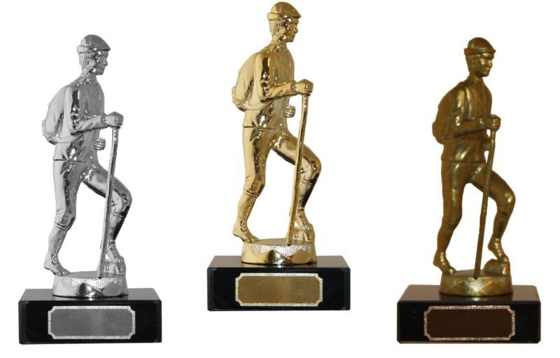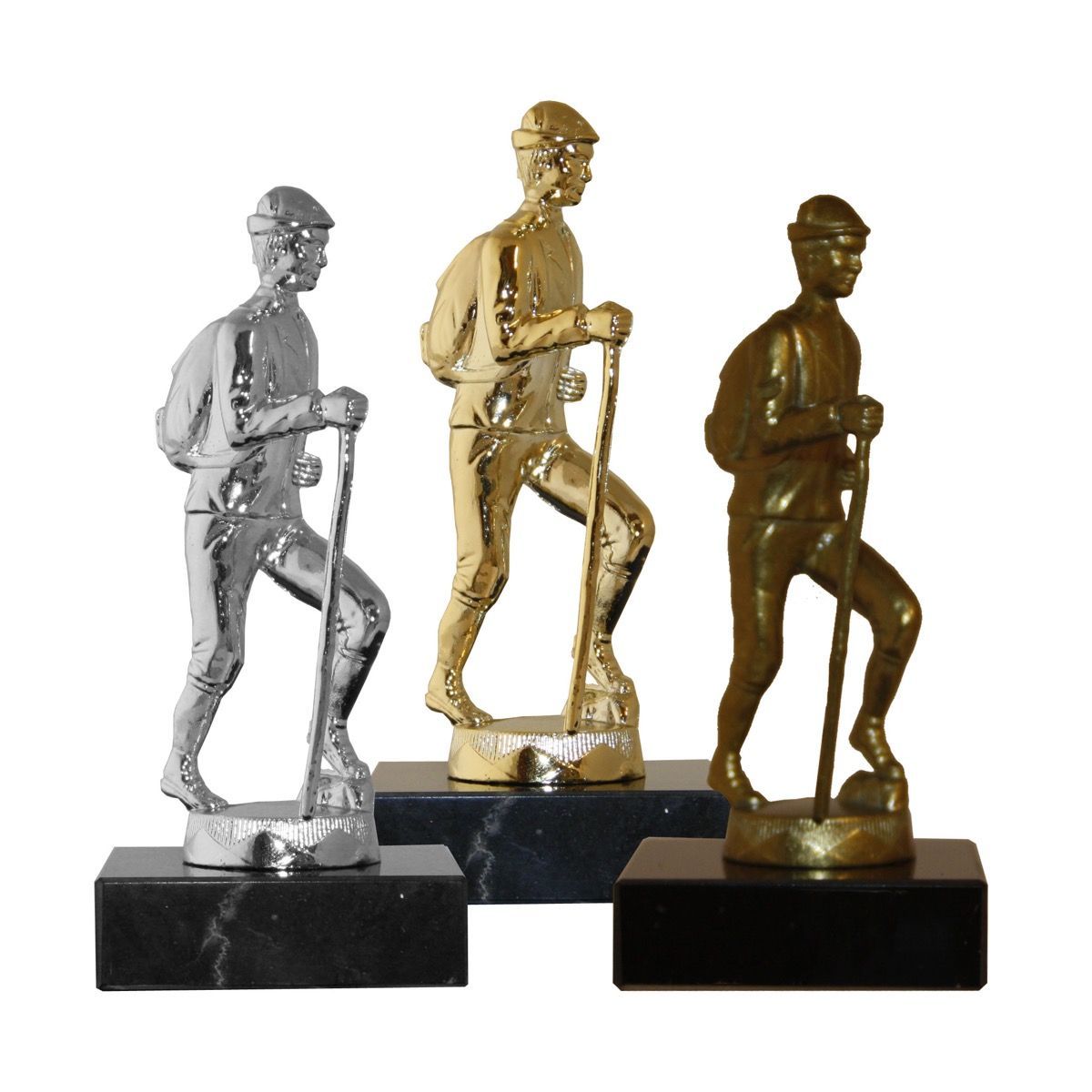 Turmarsj herrefigur støpt i metall. Gull, sølv og bronse valør på marmorsokkel.