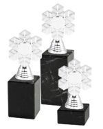 Snøkrystall-statuett på høye, flotte marmorsokkeler.